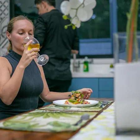 The 3-bedroom holiday home is located 300 metres from the art gallery "Galeria Estudio" and a stone's throw from the Arenal Wilberth Stables. Also, this property is a 10-minute ride from the Arenal Ecoglide Park and 3.9 km from the Termales Los Laureles. Shopping enthusiasts will enjoy a location in the immediate vicinity of the shopping mall "Onirica Art Gallery".